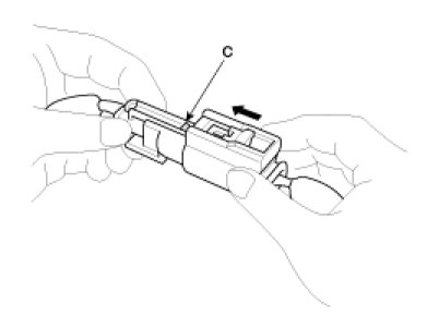 Hold both connector halves and press firmly until the projection (C) of the sleeve-side connector clicks to lock.
