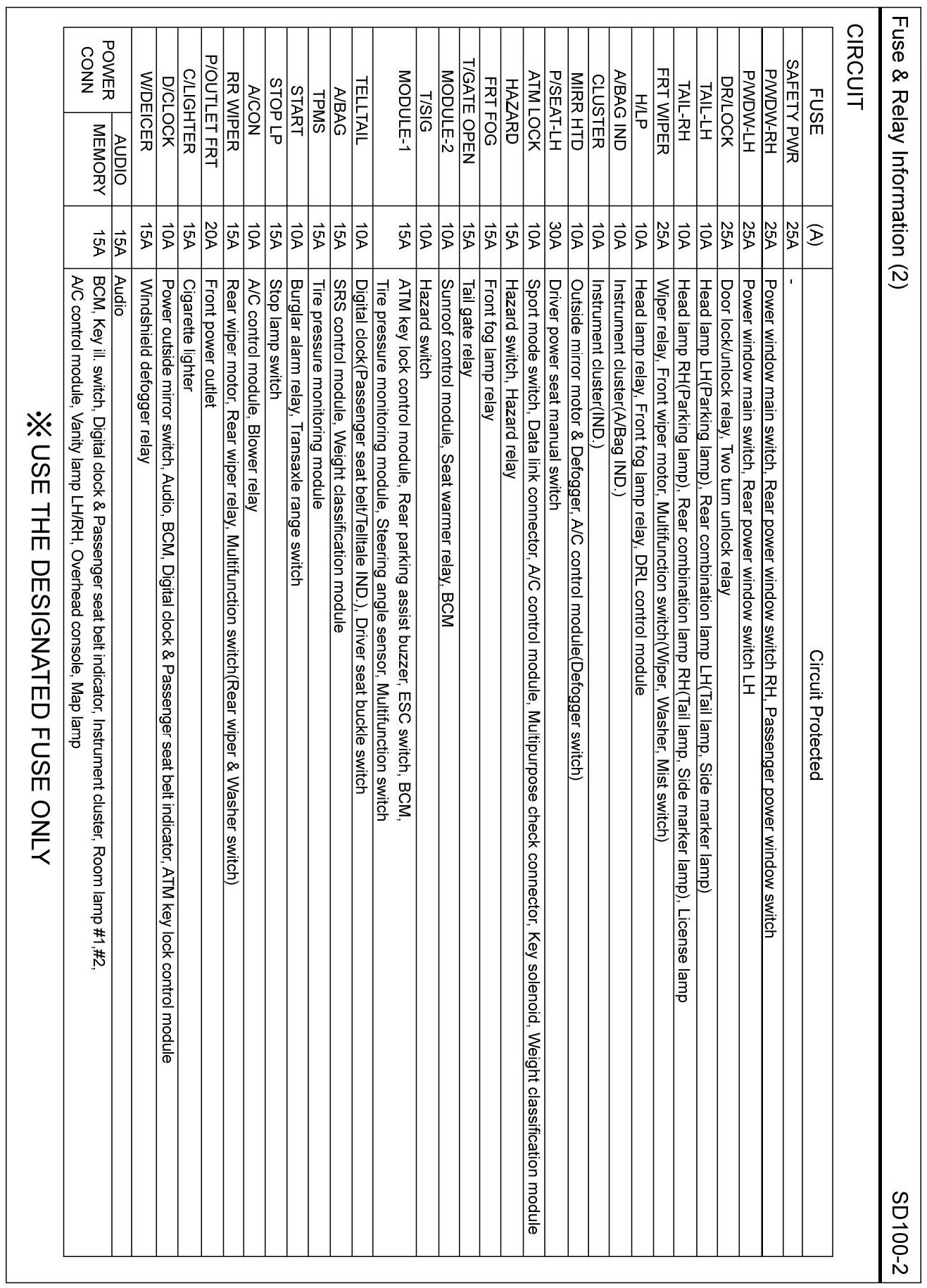 Fuse and Relay Information