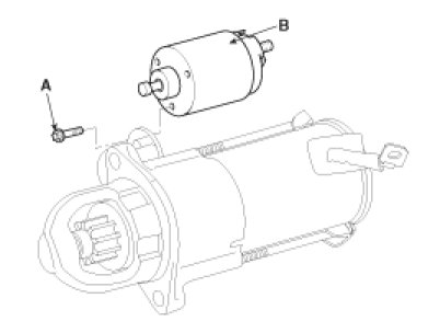 1. Disconnect the M-terminal (A) on the magnet switch assembly (B).