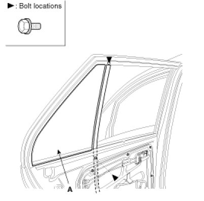 3. After loosening the mounting bolt and screw, then remove the quarter glass assembly (A).