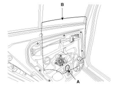 5. Carefully move the glass (A) until you can see the clip, then loosen them. Separate the glass from the glass run and carefully pull the glass out through the window slot.