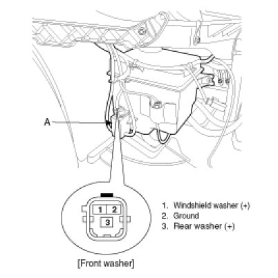 3. Check that the motor operates normally and the washer motor runs and water sprays from the front nozzles.