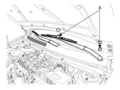 1. Remove the windshield wiper arm and blade after removing a nut (A).