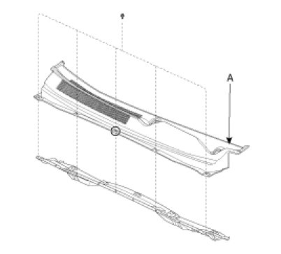 2. Remove the weather strip and the cowl top cover (A) after removing 5 rivets.