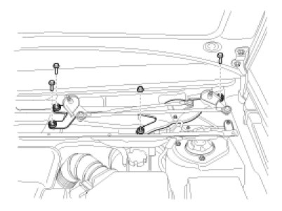 3. Remove the windshield wiper motor and linkage assembly after removing 4 bolts. Disconnect the wiper motor connector from the wiper motor & linkage assembly.