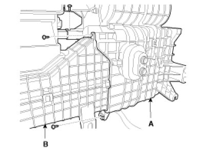 5. Remove the blower unit (A) from the heater unit (B) after loosening a mounting bolt and 3 screws.