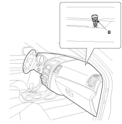 2. Use a small trim tool or small flat screw driver to remove the photo sensor(B) from the right of the defrost nozzle.