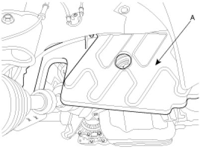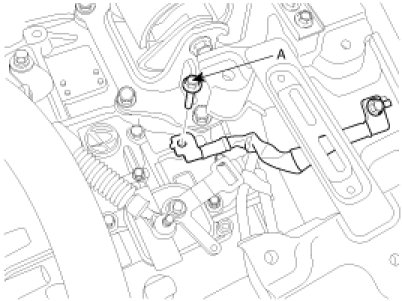 9. Remove the automatic transaxle mounting support bracket bolt (A).
