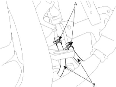 6. Disconnect the hose (B) after removing the automatic transaxle fluid cooler hose clamp (A).
