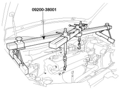 8. Using the SST(09200-38001), hold the engine and transaxle assembly safely.