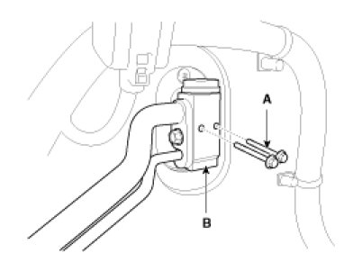 4. Remove the bolts (A) and the expansion valve (B) from the evaporator core.