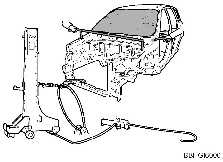 When using a frame straightener, do not enter the area where the body is being straightened by the chain.