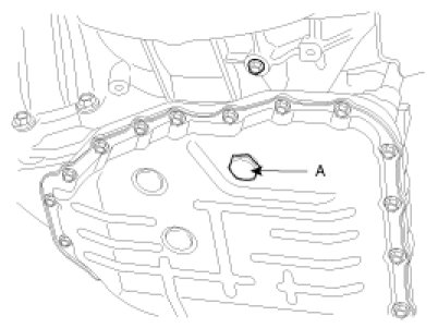 3. Remove the drain plug(A) from the bottom of the transmission case to drain the fluid.