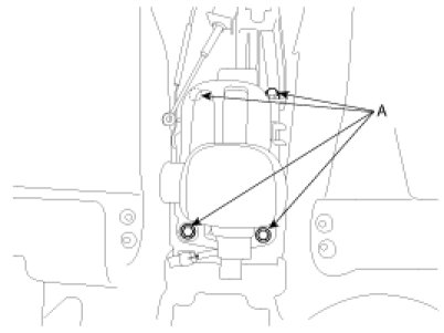 9. Remove the retainer (A) and nuts (B).