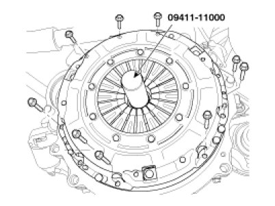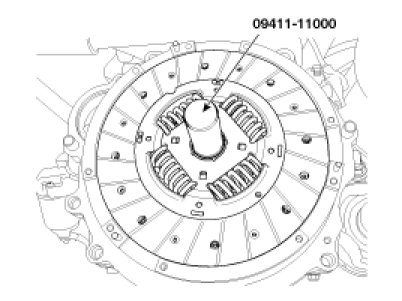 2. Temporarily install the clutch disc assembly to the flywheel using the special tool (09411-11000).