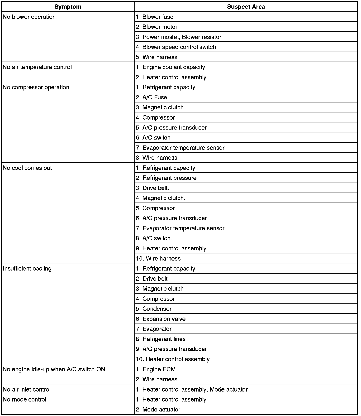Use the table below to help you find the cause of the problem. The numbers indicate the priority of the likely cause of the problem. Check each part in order. If necessary, replace these parts.