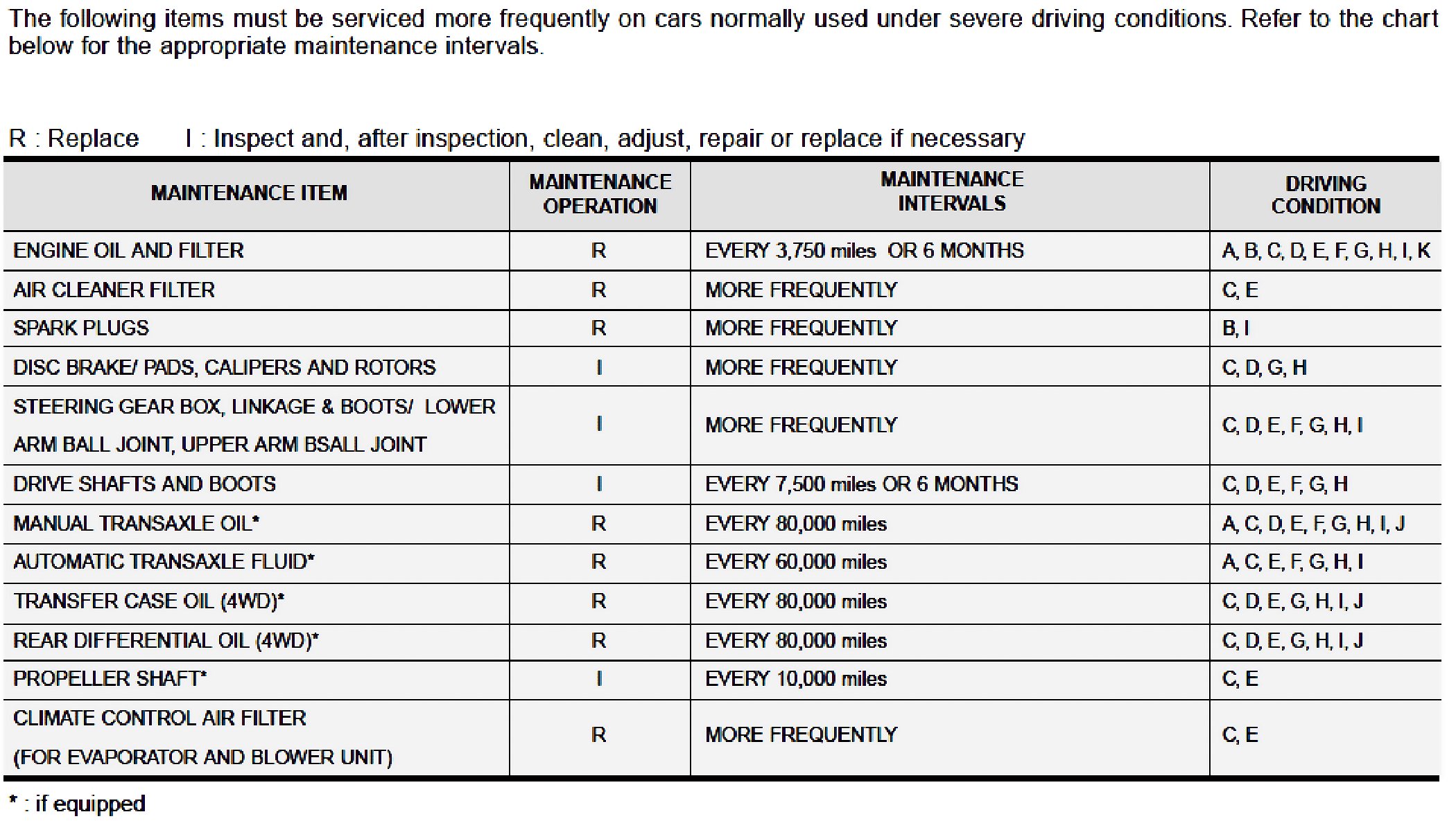 MAINTENANCE UNDER SEVERE USAGE CONDITIONS