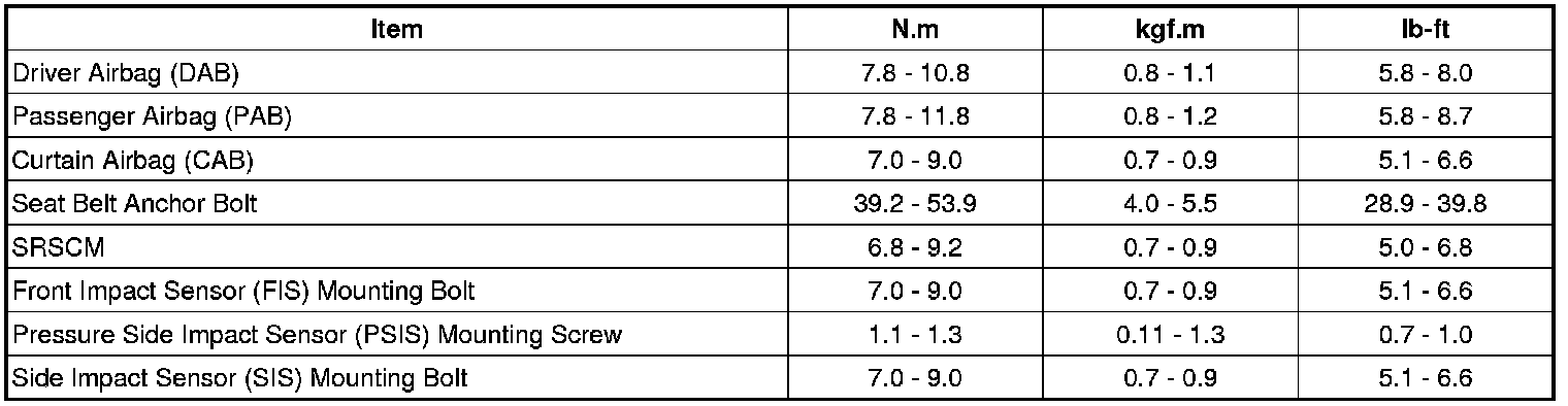 Tightening Torques