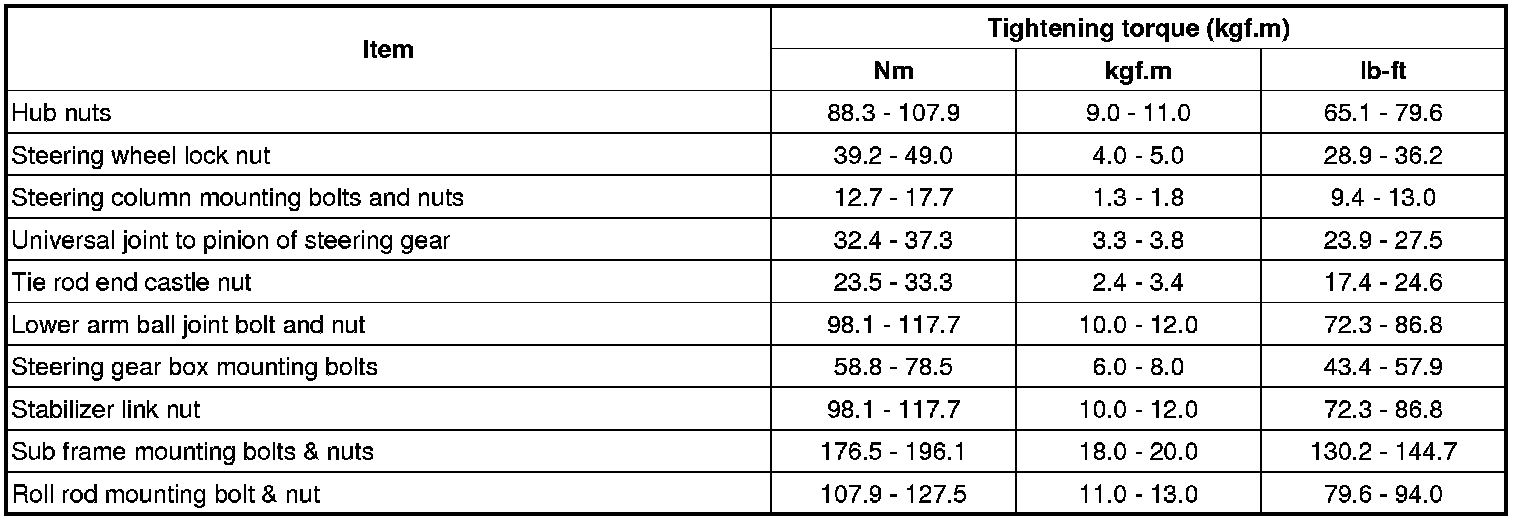 Tightening Torques