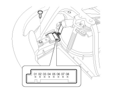 5. Remove the hands free remote control switch(A) after removing the steering wheel remote control switch connector(B) and 2 screws.