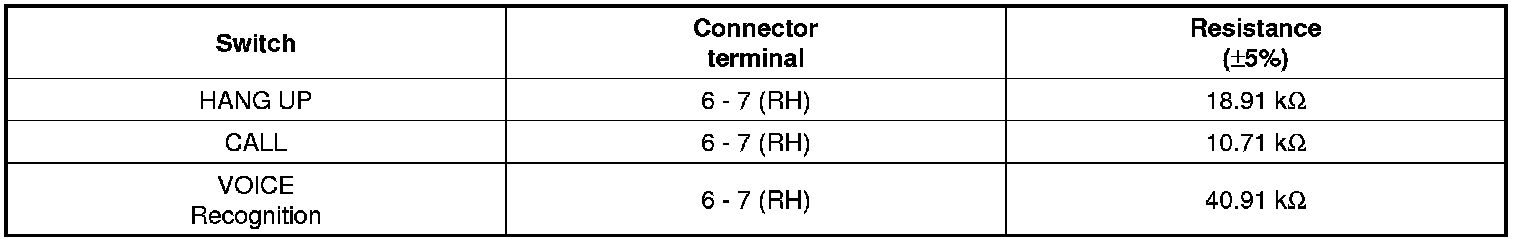 1. Check the hands free remote control switch for resistance between No.3 and No.4 terminals in each switch position.