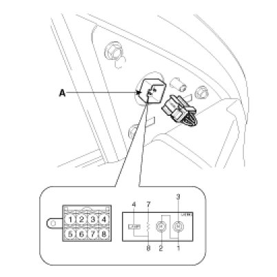 1. Disconnect the power door mirror connector(A) from the harness.