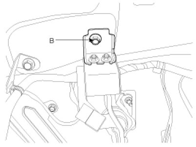3. Remove the mounting bracket bolt (B).