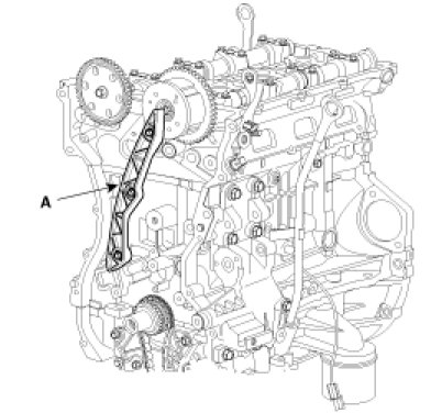 21. Remove the timing chain guide (A).