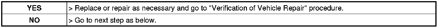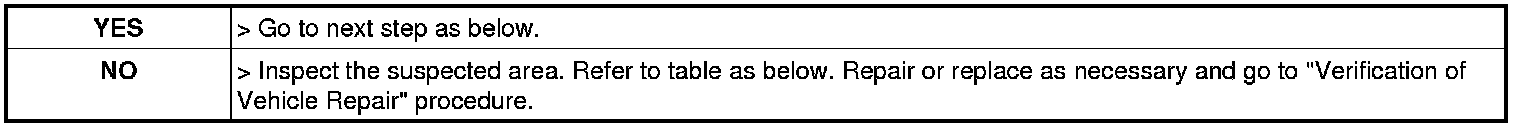 5. If test result is NG, repair or replace as necessary and go to "Verification of Vehicle Repair" procedure.