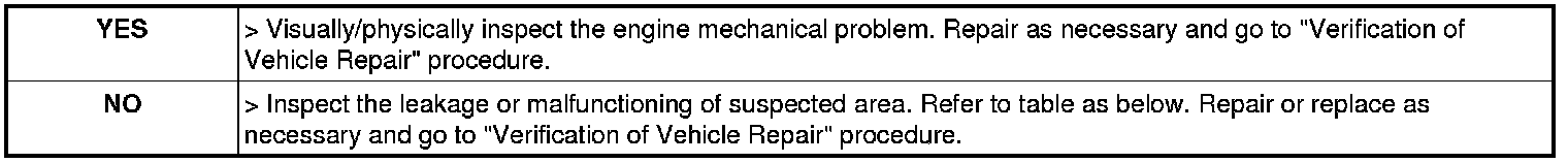 1. Visually/physically inspect the air leakage in intake/exhaust system for the following areas: