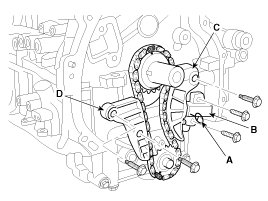 5. Remove the balance shaft chain guide (D).