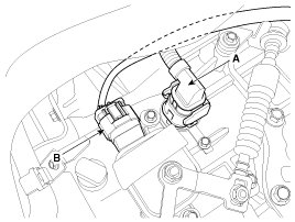 3. Disconnect the solenoid valve connector (A) and inhibitor switch connector (B).