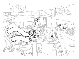 6. Disconnect the hose (B) after removing the automatic transaxle fluid cooler hose clamp (A).