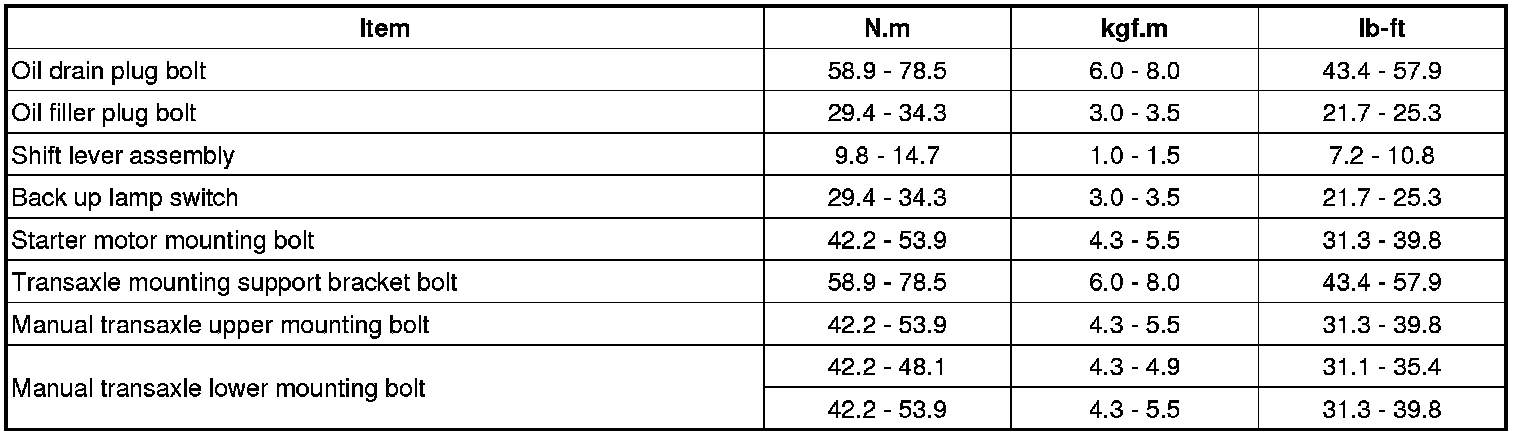 Manual Transmission/Transaxle: Application and ID: Specifications
