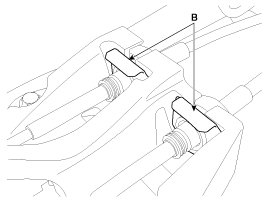 4. Remove the retainer (A) and nuts (B).