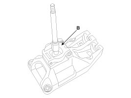 4. Remove the shift lever assembly (B) after removing shift lever assembly installation bolt (A).