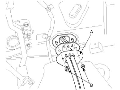 - Install the guide member (A) of the select cable (B).