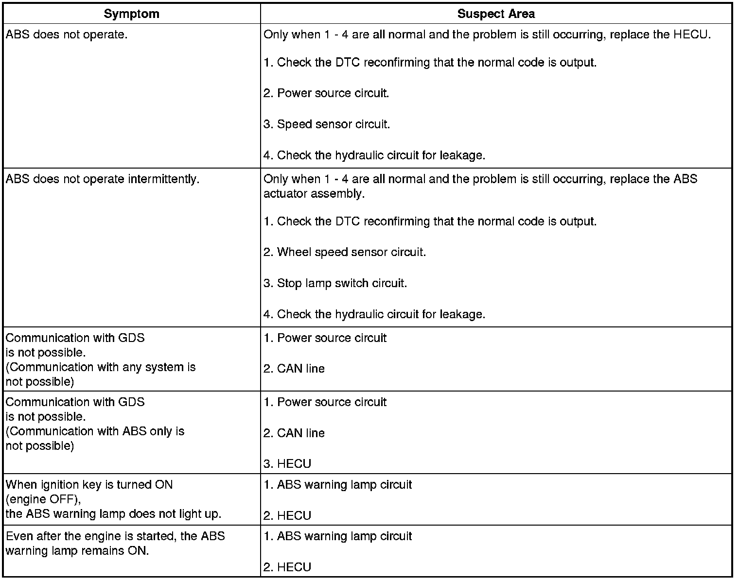 1. In principle, ESC and TCS controls are prohibited in case of ABS failure.