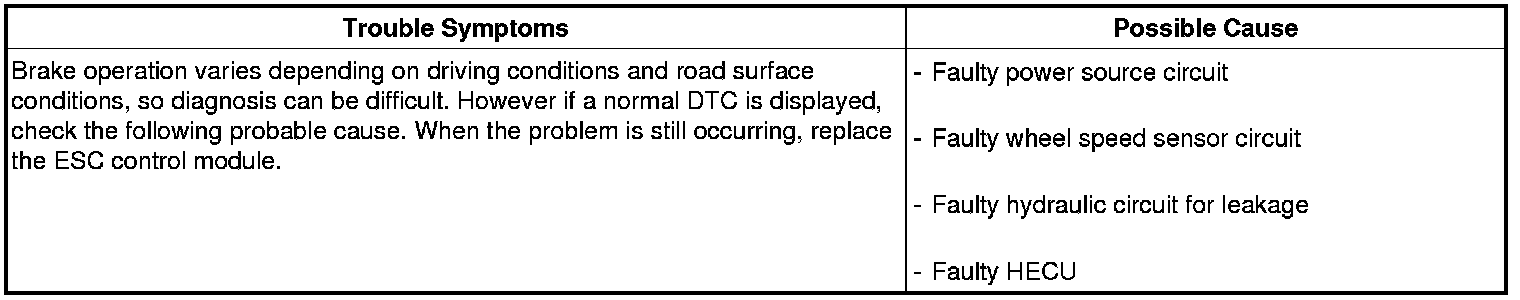 4. Information on ABS fail-safe is identical to the fail-safe in systems where ESC is not installed.