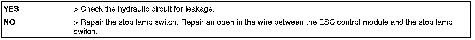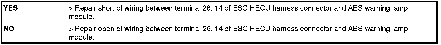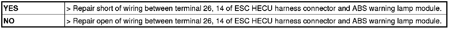Check for continuity between terminal (M01) 30 of the cluster harness side connector and terminal 14 of ESC HECU harness side.