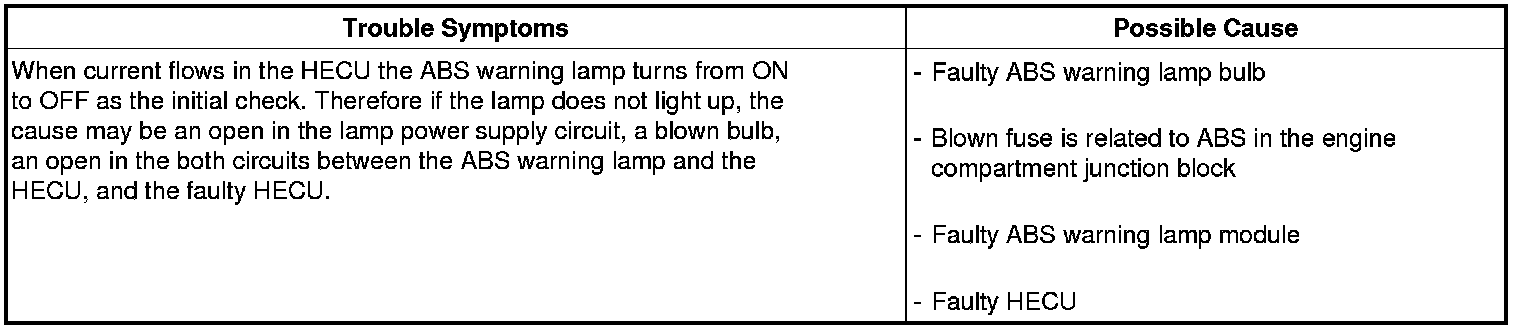 Check the power source for the ABS warning lamp