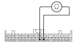 2. Check for continuity between terminals 13, 38 of the ESC control module harness side connector and ground point.