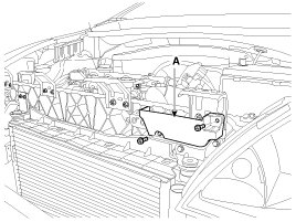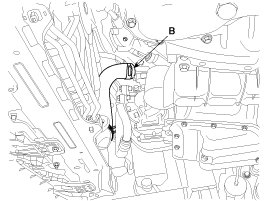 6. Disconnect the fan connector (A) and the ATF cooler hoses (B)(A/T only).