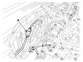 5. Remove the radiator upper hose (A) and lower hose (B).