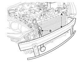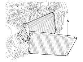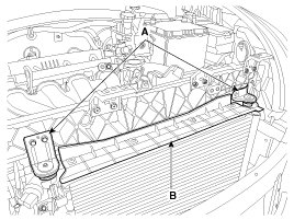 11. Remove the A/C condenser (A) from the radiator assembly and then lift up the radiator assembly (B).