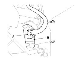 2. Disconnect the connector (A) and then remove the power mosfet (B) after loosening the mounting screws.
