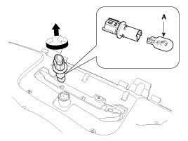 5. Remove the high mounted stop lamp bulb (A) after turning in the counter clockwise direction.