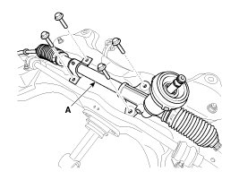 9. Remove steering gearbox (A) from the front sub frame by loosening the mounting bolts.