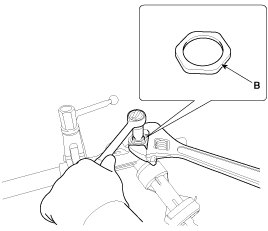 6. After fixing the yoke plug (A), remove the rock nut (B).