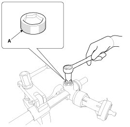 3. After spreading three bond (Loctite) on the top plug (A) thread, install the top plug by using the spanner.